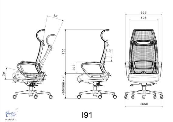 - پشت کمری صندلی I91 قابل تنظیم بوده و از قوس کمر محافظت میکند.